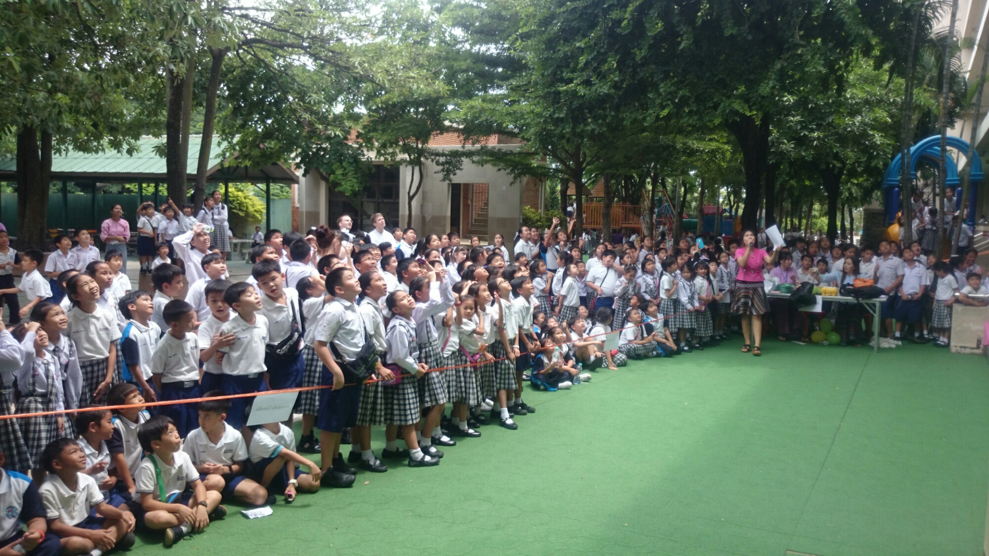 At lunchtime today the students at Varee Chiangmai School participated in a science activity – the Parachuting Eggs competition. Each class had to design a parachute to protect their egg while being dropped from the 3rd floor of the school building.